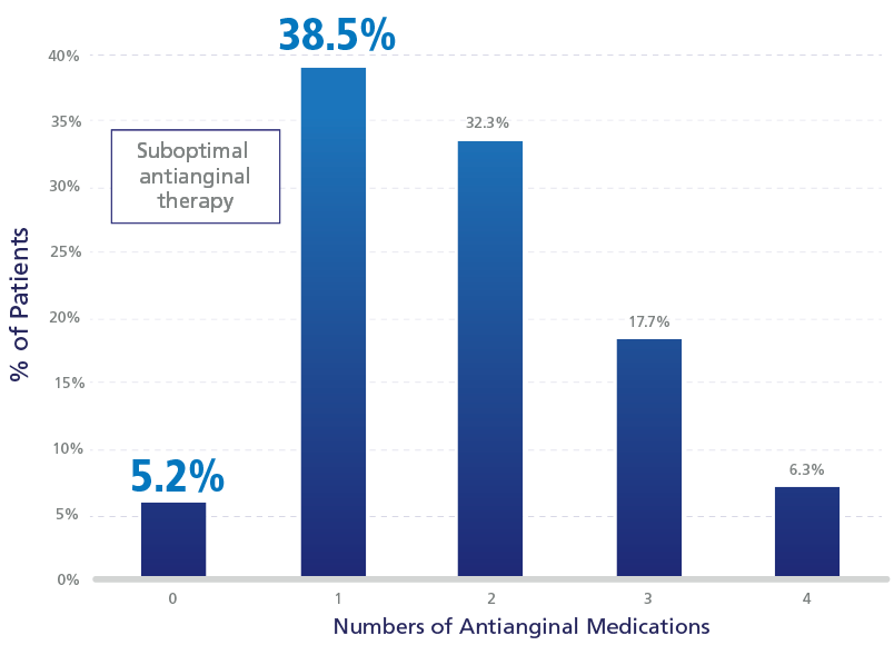 Intensity of antianginal pharmacologic management for patients with frequent (daily/weekly) angina (n = 96)