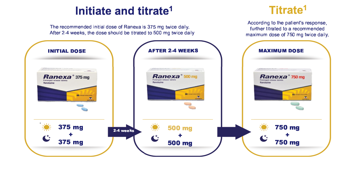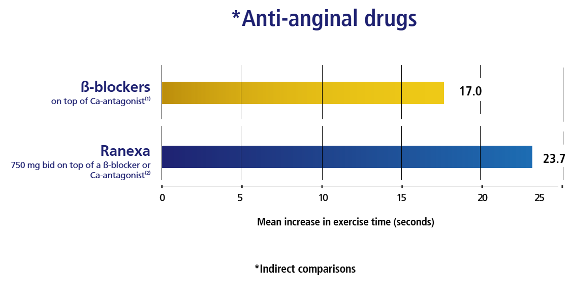 *In EU Ranexa is recommended, at a maximum dose of 750 mg bid, as add-on therapy for patients with stable angina.