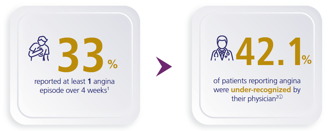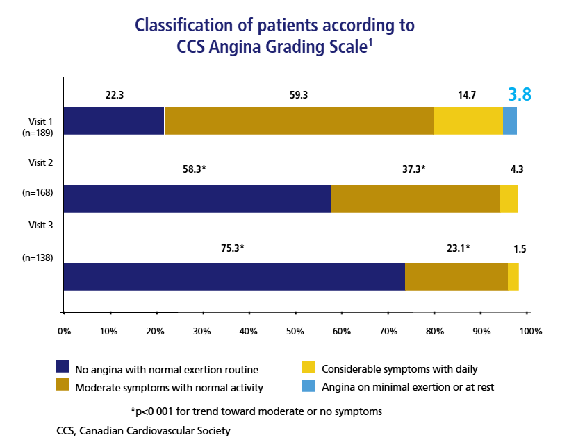 Among the 33% of patients who reported angina in the previous month: