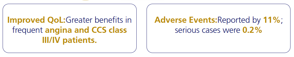 Conclusion: Ranexa shows potential in improving CFR, myocardial perfusion, and Seattle Angina Questionnaire scores in patients with nonobstructive coronary artery disease.